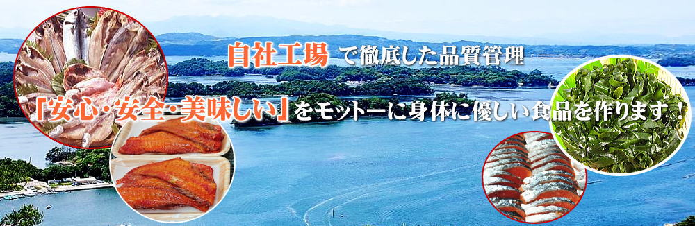 弊社では創業以来、水産品をはじめとした各種食品の加工、販売を手掛け、主に大手食品メーカーの受託・卸売り市場への販売をしており地域社会に貢献する水産品加工業を目指し、加工販売を行っております。